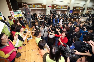台初审服贸协议 绿营民意代表争麦克风被打出血