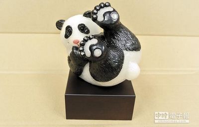台北市府获赠炭雕的台湾黑熊及盐雕圆仔。(来源:台湾《中国时报》)
