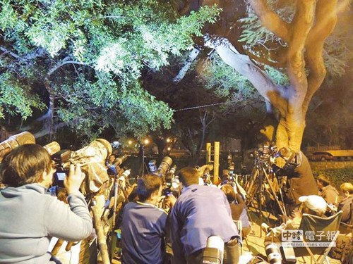 前天晚上,1只幼雏因受强光惊吓而跌落地面,幸好它已有行动能力,又慢慢回到树上。有民众看不下去,通知彰化鸟会与彰化县府农业局,辖区派出所警方也到场与摄影者沟通,提醒他们注意相关法令规定,未获善意回应。