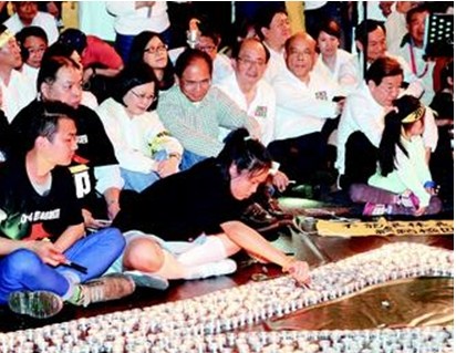 中新网4月25日电 据台湾《联合报》报道,声援林义雄禁食反核,民进党24日发起“一人一叩、守护生命”,号召数千人,从林义雄禁食地点义光教会手牵手绵延至凯道。晚间8时14分一到,沿线2.4公里点亮手机呼“2014停建核四”,最后前进凯道。