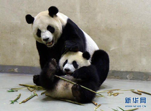 台北大熊猫“圆仔”学吃竹笋 萌态百出(图)