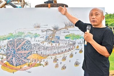 这个大型装置艺术主要建材取自八八风灾的漂流木,以“再生”为主题,在日本濑户内海国际艺术祭建构为“棋盘脚种子船”,成了去年艺术祭最受注目的作品,今年3月从日本拆装,上个月抵台在冬山河亲水公园开始组装,将在宜兰童玩节重现。
