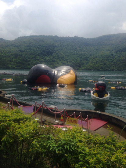 中新网8月14日电 据台湾“中央社”报道,台湾花莲寿丰乡鲤鱼潭上16只红面鸭,13日上午全泄气低头。
