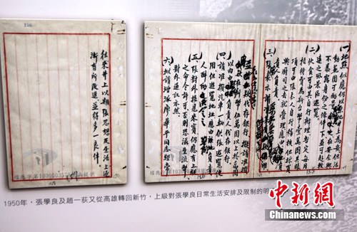 图为台湾新竹县五峰乡张学良清泉故居中展出的上级对张学良日常生活安排及限制的明确指示。 陈立宇 摄