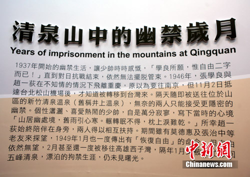 图为台湾新竹县五峰乡张学良清泉故居展览中对张学良清泉幽禁期间心境的说明。 陈立宇 摄