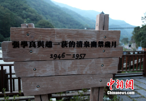 图为台湾新竹县五峰乡张学良清泉故居前的牌匾。 陈立宇 摄