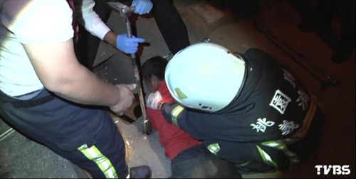 中新网10月29日电 据台湾TVBS新闻网报道,为了捡水沟里的零钱,有男子把手伸进洞口里,结果整条上臂卡住,动弹不得,这事发生在昨天晚间。许姓男子疑似喝了酒想捡钱,硬是把手塞进去,没想到进得去,出不来,最后还是路人报案,消防队员赶紧来前来救援。