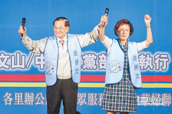 连战、连方瑀夫妇16日首度连袂站台。《中国时报》
