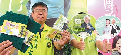 台选举拼文宣赠品:毛巾、精油、菜瓜布受喜爱