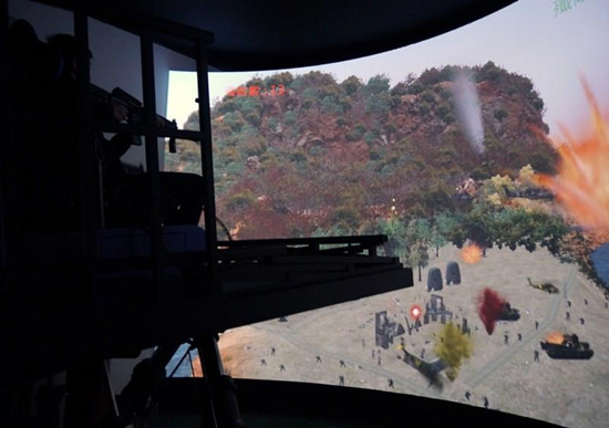 “战斗体感游戏系统”,除采用高仿真模拟枪外,还具有射击后座力效果,让人有身历其境的感觉。“中央社”