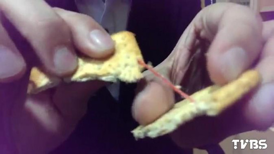 饼干里有一条长约8厘米的线。TVBS网站