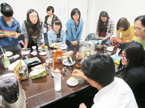 图为借阅率很高的陈俊廷教授示范咖啡拉花。 图:台湾《联合报》
