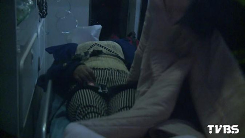 被人拉走救了一命的是52岁林姓女子,躺在救护车上,浑身酒味不停颤抖。图自TVBS网站