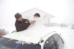 合欢山昨日傍晚6时许开始飘雪花,虽然雪势不大,但整晚陆陆续续的飘,再度让合欢山公路自昆阳以上至松雪楼沿线出现积雪。