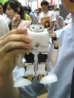 今年机器人展上,服务型机器人不断推陈出新。全世界最小商品化的人形机器人BeRobot首次亮相,高度只有15厘米,可以无线遥控或是声控。BeRobot有65000多种动作,跳舞、伏地挺身甚至打太极拳都难不倒,还可以变身为电子宠物。