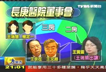 中新网3月4日电 据台湾TVBS报道,台塑集团创办人王永庆辞世之后,二房、三房的角力跃上台面,最受瞩目的就是掌握台塑集团绝对股权的长庚医院董事会。长庚医院院长证实,原本三房李宝珠家族掌握三个席次,但后来家族会议决定三房次女王瑞瑜退出,让给二房长女王贵云,这么一来,二、三房都有子女坐镇董事会,为的还是今年6月台塑三宝的董监事改选角力。