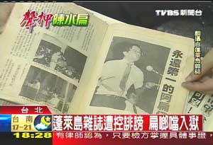 中新网11月11日电 台湾TVBS电视台报道说,弊案连串爆发的这段日子,陈水扁常提起22年前的“政治黑牢”,其实他说的就是“蓬莱岛案”入狱,当年陈水扁跟前“立委”黄天福,还有前“内政部长”李逸洋正在岛内政坛窜起,因为“蓬莱岛”杂志中的一段话,被指控诽谤并且判刑,为此陈水扁入狱服刑8个月,如今眼看着又走到了大牢前,只是理由大不相同。