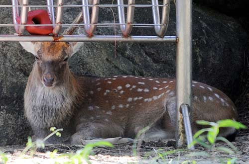 赵明杰说,荷兰占据台湾时,曾大量外销鹿皮,造成梅花鹿濒临绝种,1969年在野外绝迹,动物园内保存的梅花鹿族群,成了台湾梅花鹿保育复育的重要种源;1984年二十六头梅花鹿到垦丁公园复育成功,现在已复育三百头以上,保育有成,但园内现仅十只。