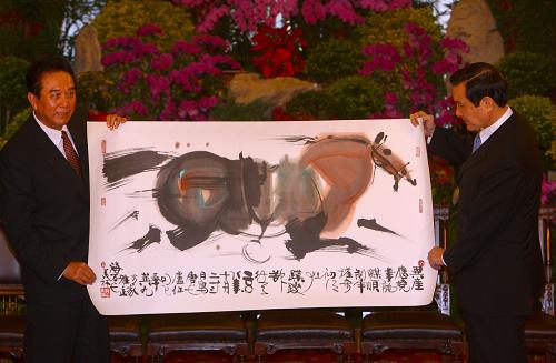 陈云林赠送给马英九的是大陆著名画家韩美林的一幅骏马画作。