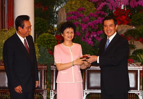 陈云林向马英九赠送礼品。