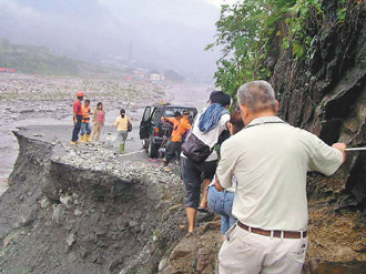 “森拉克”台风吹断中横公路,当地已形同“孤岛”,虽粮食无虞,但谷关有许多中秋假期返家的学生,还有些洗肾及心脏病、糖尿病患药物已吃完,大家心急如焚要外出就学、就医。