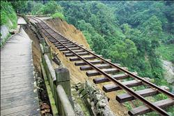 阿里山铁路路基滑落百米深山谷 铁轨悬空(图)