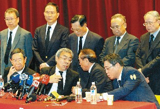 中新网10月17日电 台塑集团创办人王永庆遗体今天清晨6点30分返台,台塑集团“七人决策小组”也在集团总裁王文渊带领下,上午9点20分举行创办人过世后的首次记者会。王文渊强调,台塑集团现有的“七人小组”运作模式不受创办人过世而有任何重大转变,但会“因时间、空间改变,进行适时微调”。