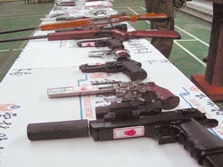 台警方查获透过网络营销具杀伤力的改造手枪,是目前黑帮分子的最爱。(图:台湾《中国时报》)