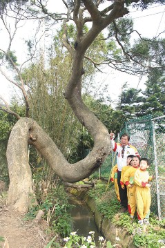 据台湾《联合报》报道,“张校长森林托儿所”所长张荣健日前带孩童户外教学时发现这棵形状怪异的老相思树,他为相思树整理环境并立路标。
