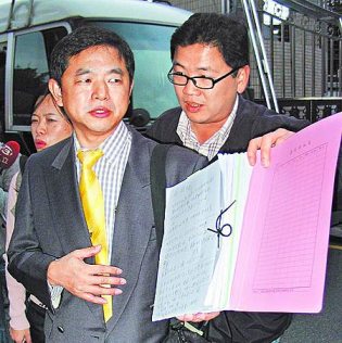 陈水扁律师展示陈水扁手稿。(来源:台湾《苹果日报》)