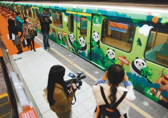 中新网12月26日电 据台湾《联合报》报道,台北捷运南港线东延段南港站昨天(25日)下午启用通车,站内六幅大型几米画作,吸引许多民众争睹,同时启动的可爱熊猫列车也让乘客耳目一新。