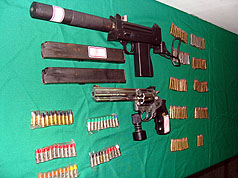 他说,由于苏姓嫌疑人不停车且拟冲撞警车,警方只好对空鸣枪示警,共开3枪才把小货车拦停,在车上查获制式乌兹冲锋枪1把及子弹60发,美制制式左轮手枪1把及子弹94发、45手枪子弹5发,火力强大。