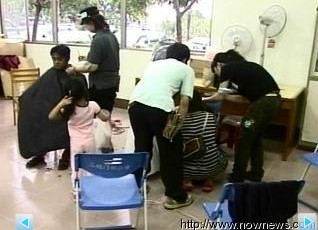 中新网8月17日电 综合台湾媒体报道,屏东三地门的活动中心,目前安置将近300位灾民,却只有一个厕所,又常常停水,灾民要洗澡洗头,就得大排长龙。16日下午,刚好有一群美发师到收容中心当义工,结果大人、小孩争相剪头发,大家都说,头发剪掉,不但方便清洗又凉爽多了。