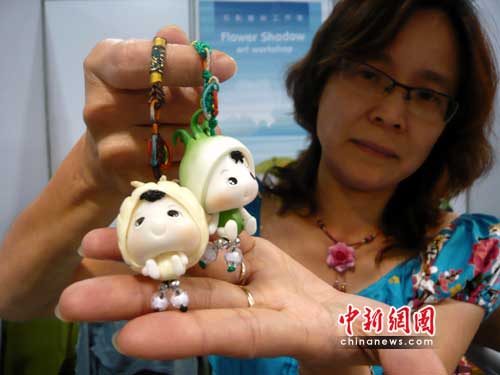 基隆馆内文创商家展示基隆地域特色的手工黏土公仔。