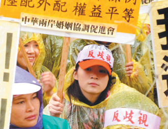 讽刺的是,现在台湾上下只想赚大陆人的钱,挹注台湾颓圮的经济。可台湾社会有善待人家的女儿吗?政策不公无形中增加大陆配偶的高离婚率。