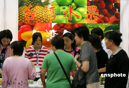 十月十三日,在上海举行的二○○六中国国际果蔬博览会上,来自宝岛台湾的水果受到市民的青睐。中新社发 汤彦俊 摄