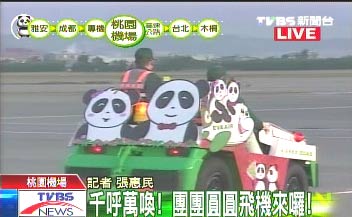 图:赠台大熊猫“团团”、“圆圆”抵达台北