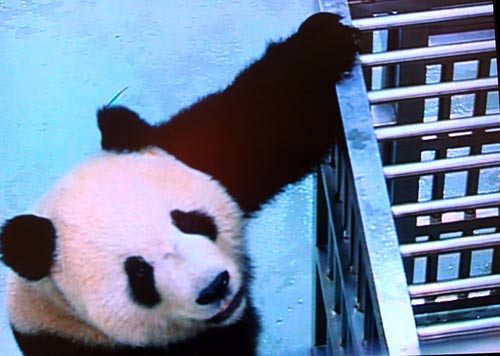 图:大熊猫抵达台北市动物园开始第一次进食