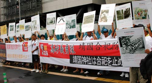 中新网8月11日电 台湾“立委”高金素梅率领“还我组灵队”10日到日本国会附近抗议,要求日本政府反省、谢罪和赔偿,并将台湾少数民族祖先从靖国神社除名。