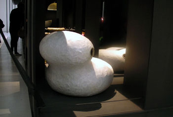 设计师廖柏晴搜集了2009年台湾风灾的大量漂流木,以书法写作行云流水的姿态为灵感,在漂流木上涂上昂贵的漆料,做成有现代感的古董家具,在会场中是受关注度最高的展品之一。