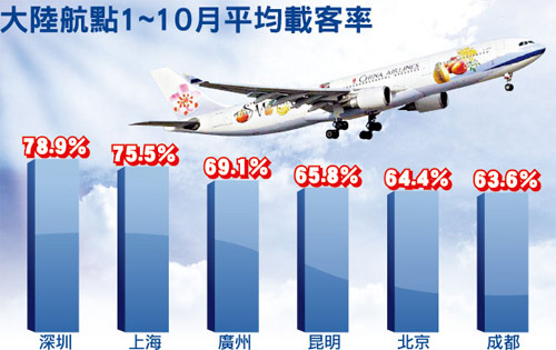 台“民航局长”李龙文指出,两岸航班已渐入正轨,上海、福州最近的载客率都逾八、九成,机位供给显现不足现象,确实有必要解决,如建立大节日加班机机制及开放陆客从台湾转机到欧美等。