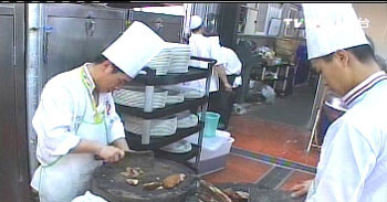 厨房里,43名大陆沙县厨师忙里忙外,要筹备17道家乡特色小吃,可不容易。豆腐、蛋白、再加点地瓜粉,充分搅拌后,加上一点鲜肉,放进热水中,这是沙县特色的豆腐丸子。
