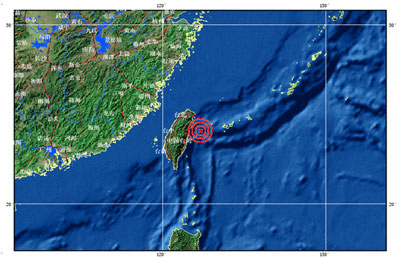 中新网7月16日电 据中国地震台网测定,北京时间7月16日18时48分,在台湾花莲海域(北纬24.1度,东经122.3度)发生5.2级地震。震中距花莲县约70公里,距台北市约130公里。