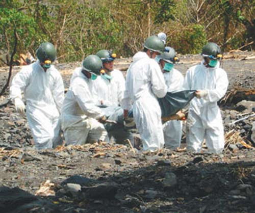 中新网8月17日电 据台湾《联合报》报道,台湾高雄县六龟乡新开部落三十二人,在莫拉克台风中遭泥石流活埋。走进部落,台军挖掘罹难者遗体的工作正在展开,踩过的地方流出黑红色尸水,感觉像走在乱葬岗上。