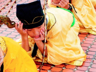 乐生由成渊高中初中部学生担任,最吸引目光的佾生仍由大龙小学学生担纲。释奠祭品由开平餐饮学校师生负责,发挥孔子“食不厌精,烩不厌细”精神,陈设三羹、四食、十笾、十豆等二十七种菜色。