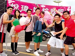 日月潭马拉松比赛昨日举行,吸引六千四百五十八名世界各地跑者,分六公里路跑、二十一公里半马、四十二公里全马三组竞技。赖志壕跑完六公里后满身大汗,穿着运动短裤,却罩着西装外套上台,好友组成的加油团在他背后高举布幔,他拿出预藏的戒指与花束,使劲喊出“悦玮,嫁给我好吗?”