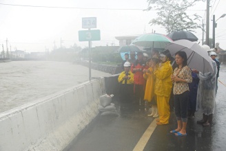 大水淹进了丸山路住家,县长吕国华和乡长张秋明挨家挨户敲门劝住户撤离。军方出动一百五十多名人力,协助堆砂包,清淤塞。