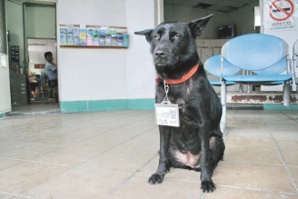 屏东客运恒春转运站和“胖胖”2年多前结缘,赖巍崟说,它原是由恒春警分局侦查队的友人饲养,友人因搬家不方便再养,转托他收养,他把胖胖养在转运站后方空地,原先担心它乱跑咬人,用铁链绑着,因和站务员朝夕相处,发现它个性温驯,解掉铁链,没想到胖胖“工作”比谁都称职。