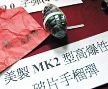 据了解,警方查获的美军MK2型高爆性破片手榴弹,是美军于二次大战期间所设计制造,由于其弹体炸开后会发射出60余块破片,故又称“破片手榴弹”,手榴弹爆炸后有效杀伤半径为15米,危险半径竟达185米,可瞬间瘫痪小区域内所有目标,威力惊人,其“一弹在手,威力无穷”的恫吓效应,莫不让黑道人士们趋之若鹜,都想拥有一颗在手,以提升派在道上份量。