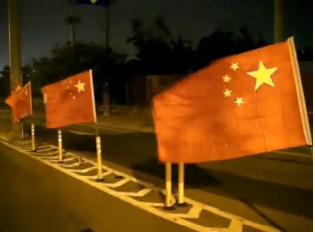 据民众发现,但是在附近沙鹿交流道与中清路上,被插上9面五星红旗,强风吹袭下迎风飘扬,十分醒目,尤其在车灯照射下,很远就可看见,还有人停车拿起手机拍照纪念。